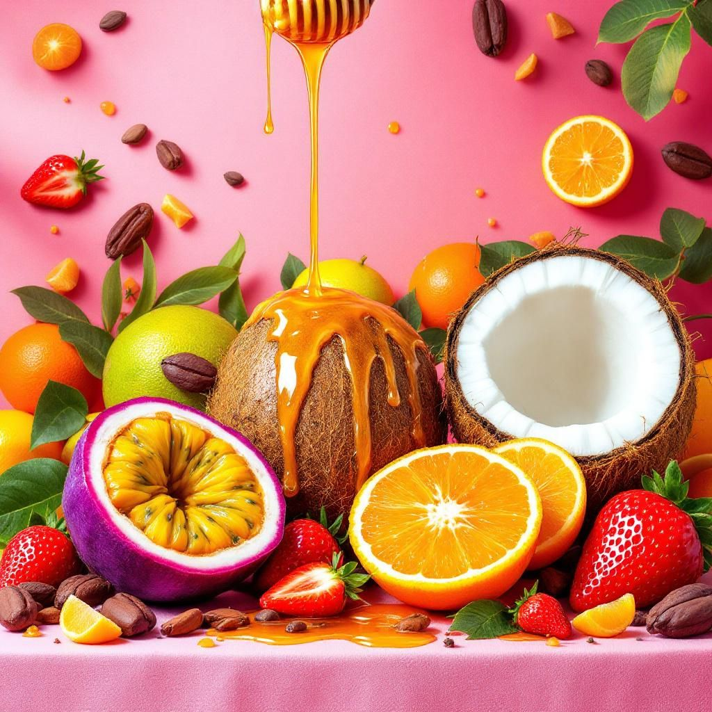 Tasting notes: Passion fruit, citric, cacao, coconut, tropical fruits, strawberry, honey, citric acid, and orange notes.